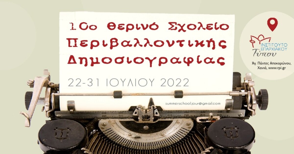 Το Θερινό Σχολείο Περιβαλλοντικής Δημοσιογραφίας επιστρέφει στα Χανιά και στις εγκαταστάσεις του Ινστιτούτου Επαρχιακού Τύπου (Ίδρυμα Αγία Σοφία) για μια ακόμα χρονιά, από τις 22 Ιουλίου μέχρι και τις 31 Ιουλίου 2022.