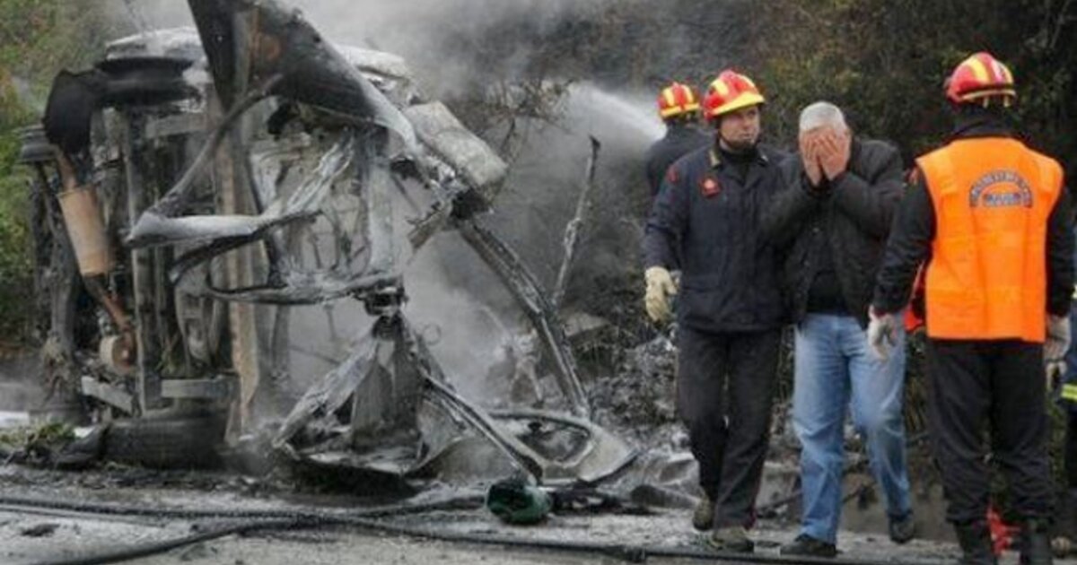Οι φλόγες και οι εκρήξεις συνθέτουν ένα σκηνικό απόγνωσης και τρόμου και κανείς από τους διερχόμενους οδηγούς που έχουν σταματήσει στην άκρη του δρόμου δεν μπορεί να προσφέρει συνδρομή στους δύο άνδρες που βρίσκουν φρικιαστικό θάνατο.