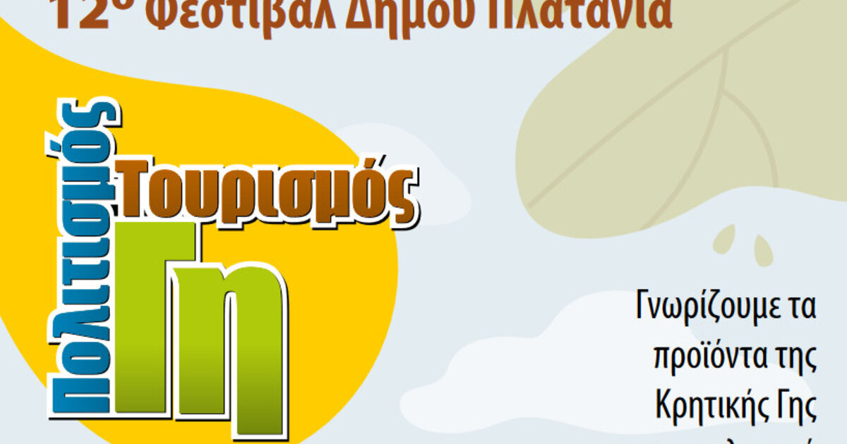 Ο Δήμος Πλατανιά και η Κοινωφελής Επιχείρηση του Δήμου Πλατανιά, σε συνδιοργάνωση με την Περιφέρεια Κρήτης, διοργανώνουν για 12η συνεχόμενη χρονιά, το Φεστιβάλ «Γη, Πολιτισμός, Τουρισμός».