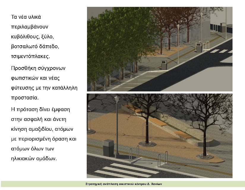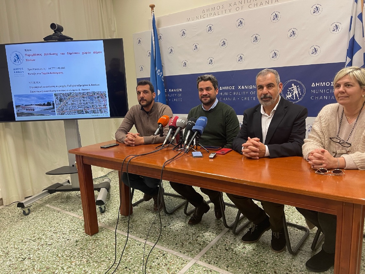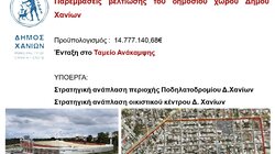 Συγκεκριμένα, με συνολικό προϋπολογισμό 14.800.000 ευρώ περίπου, δημοπρατήθηκαν τα έργα: «Στρατηγική Ανάπλαση Περιοχής Ποδηλατοδρομίου Δήμου Χανίων» και την «Αστική Ανάπλαση Οικιστικού Κέντρου Χανίων» σε 30 οικοδομικά τετράγωνα στην περιοχή του ΚΤΕΛ, στο αστικό κέντρο της πόλης.