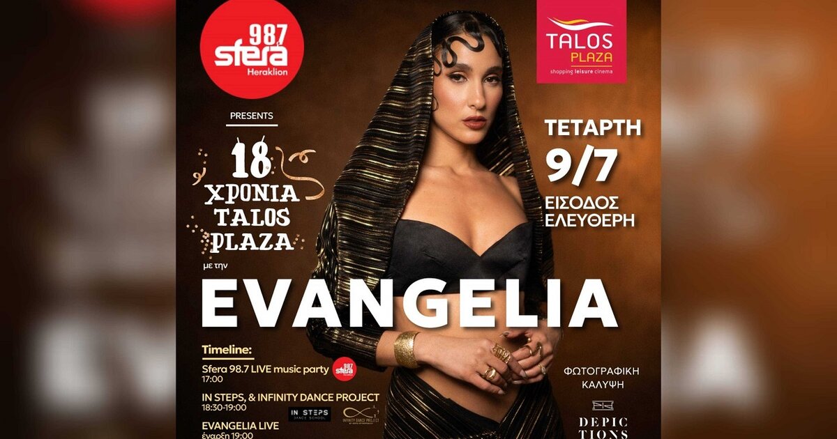 9/7 LIVE on stage η εκρηκτική EVANGELIA & το crew της σε ένα μοναδικό υπερθέαμα μουσικής και θεάματος με πυροτεχνήματα & giant birthday cake, αλλά & dance shows από δημοφιλείς σχολές χορού της πόλης μας! ❤️