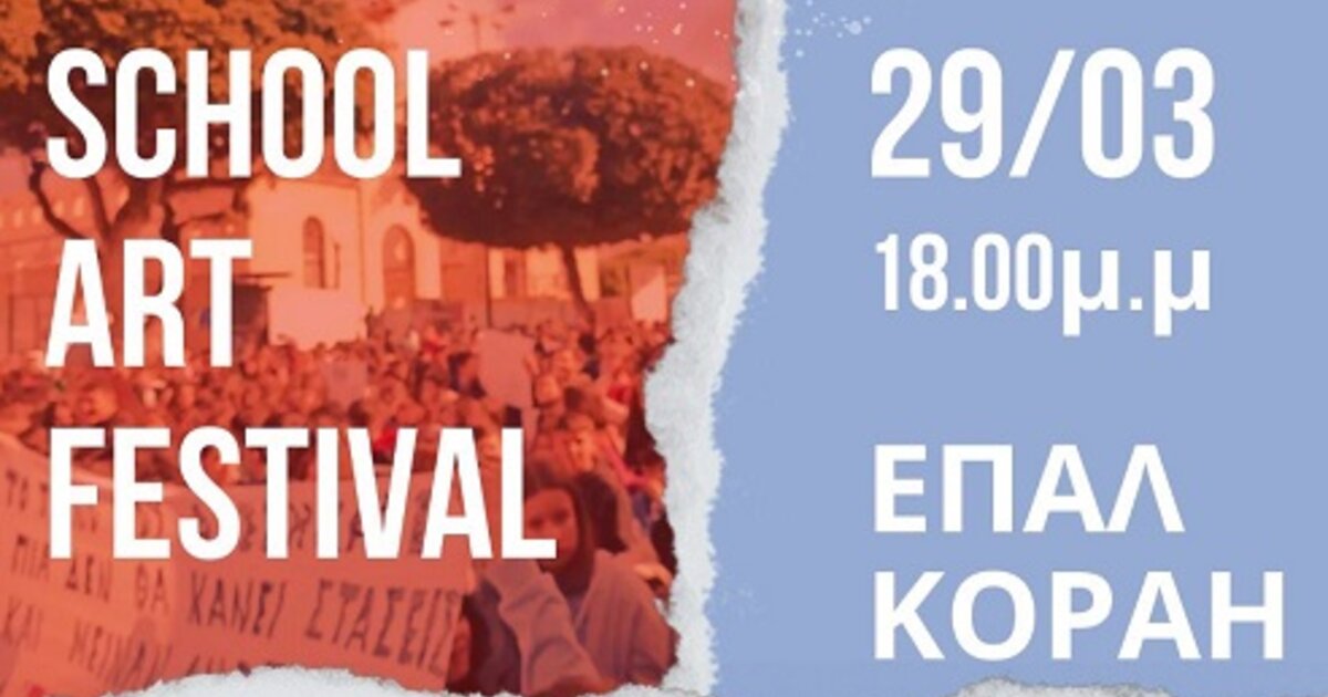 "Το School Art Festival,με σύνθημα «ΔΕΝ ΕΧΩ ΟΞΥΓΟΝΟ-ΑΥΤΟ ΕΙΝΑΙ ΠΟΥ ΚΑΝΕΙ ΤΟ ΚΡΑΤΟΣ ΔΟΛΟΦΟΝΟ» οργανώνεται από μαθητές και απευθύνεται σε μαθητές από κάθε σχολείο κάθε 5/λες και 15/λες για να στείλουμε ηχηρό μήνυμα απέναντι στην πολιτική του κράτους και των κυβερνήσεων που μας στερούν το οξυγόνο και δεν μας αφήνουν να αναπνεύσουμε.