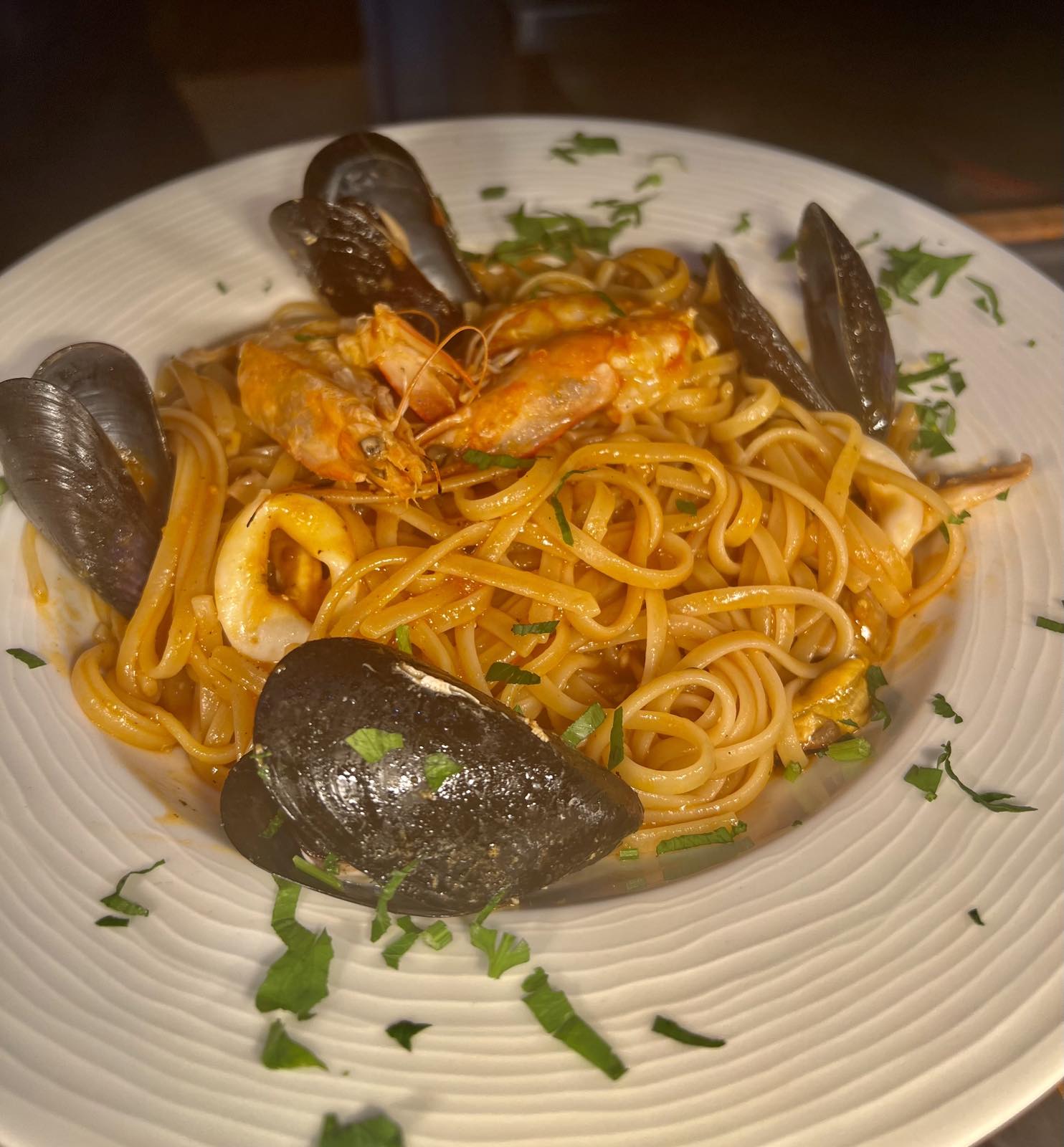 - Λιγκουίνι “Βονγκόλε” με βονγκόλες, γυαλιστερές και αρωματικό μαϊντανό.