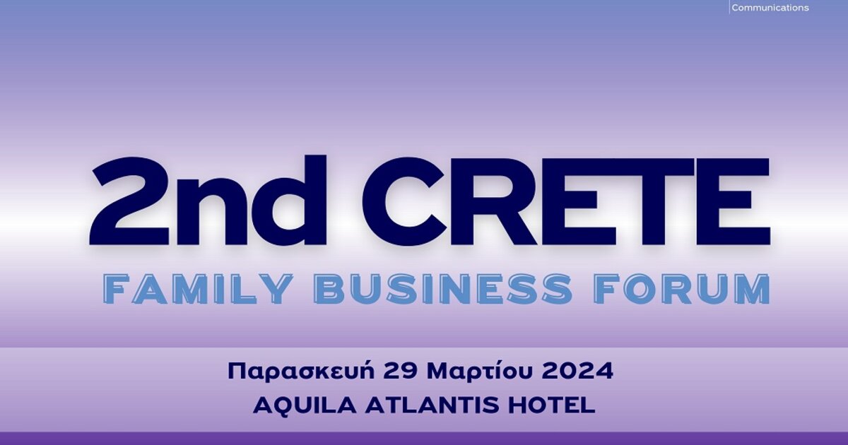 Στο 2nd CRETE FAMILY BUSINESS FORUM θα συζητηθούν, μεταξύ άλλων, η διαδοχή, η συνδιαχείριση δύο γενεών, τα megatrends και οι γεωπολιτικοί κίνδυνοι που επηρεάζουν και συνδιαμορφώνουν την πορεία τους.