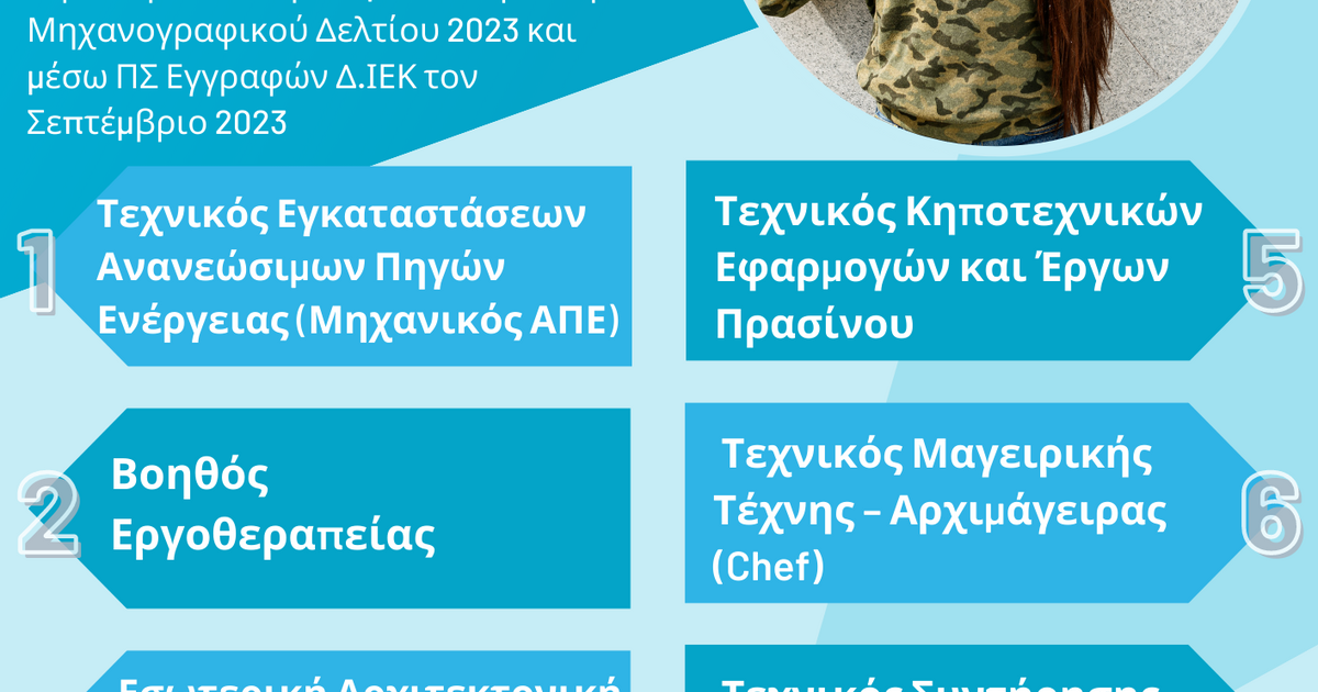 2ο ΔΙΕΚ Ηρακλείου: Ειδικότητες Παράλληλου Μηχανογραφικού για την Εισαγωγή Καταρτιζόμενων στα Δημόσια ΙΕΚ για το έτος 2023-24