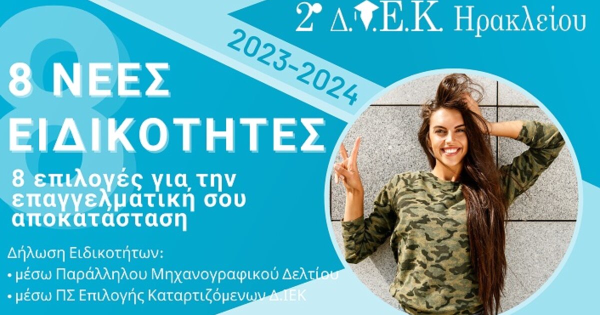 Ενημερωθείτε για τις νέες ειδικότητες που θα λειτουργήσουν στο 2ο Δημόσιο ΙΕΚ Ηρακλείου το έτος 2023-24: