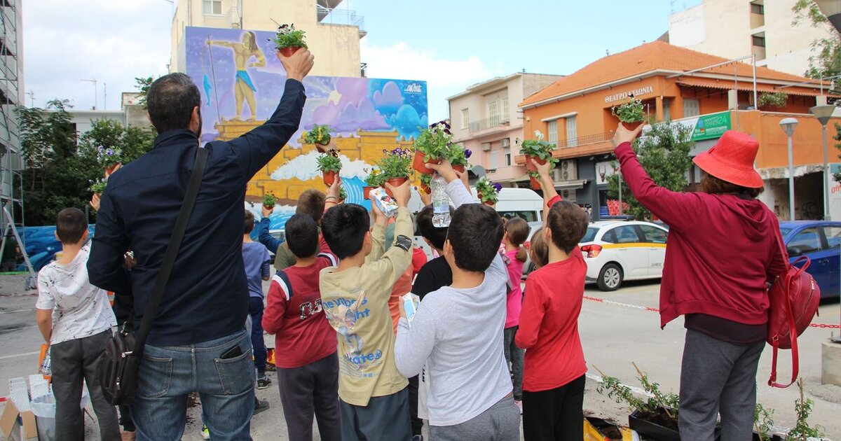 3.000 γιασεμιά στον τοίχο του Δημοτικού Πάρκινγκ ΚΥΔΩΝ με τη συμμετοχή μικρών μαθητών από σχολεία του Δήμου Χανίων