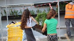 Οι μαθητές πήραν μέρος στη μεταφύτευση φυτών σε γλάστρες, που στη συνέχεια τοποθετήθηκαν στην κατασκευή του Πράσινου Τοίχου της επιχείρησης, στο πλαίσιο του έργου ο «Τοίχος με το Γιασεμί».