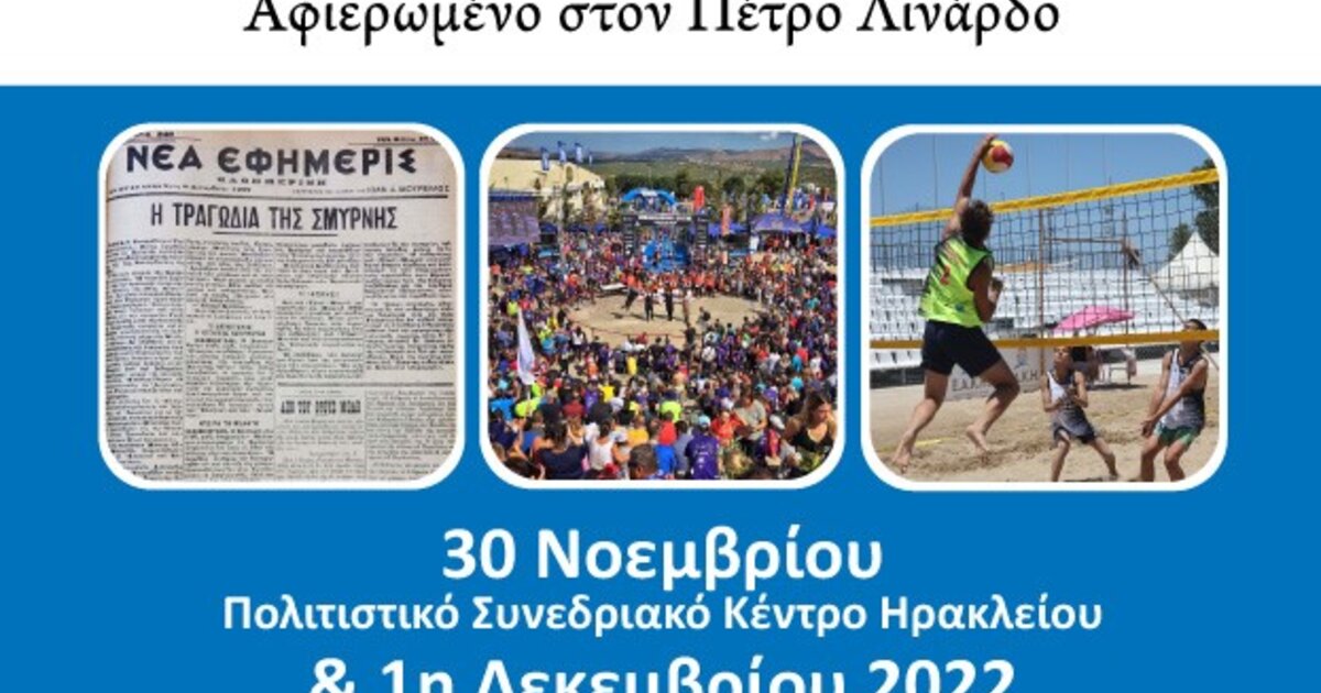 - 09:30: Η προσφορά της Μικράς Ασίας στην ανάπτυξη του αθλητισμού στην Ελλάδα και ειδικότερα στην Κρήτη και στην Κύπρο.