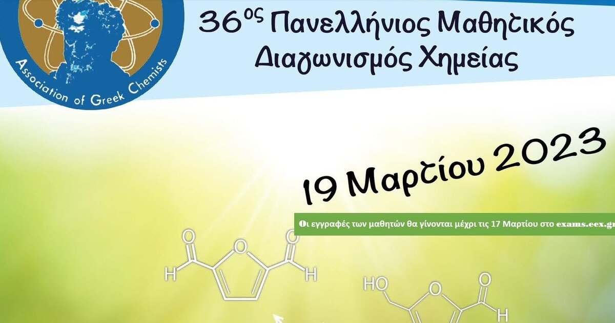 Η πρώτη φάση του Πανελλήνιου Μαθητικού Διαγωνισμού Χημείας 2023 θα πραγματοποιηθεί διαδικτυακά την Κυριακή 19 Μαρτίου.