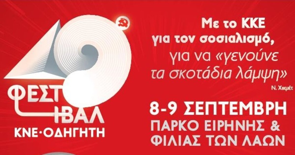 «Με το ΚΚΕ για το Σοσιαλισμό, για να "γενούνε τα σκοτάδια λάμψη"». Αυτό είναι το σύνθημα του 49ου Φεστιβάλ ΚΝΕ – Οδηγητή, εμπνευσμένο από το ποίημα “Όπως ο Κερέμ” του μεγάλου Τούρκου κομμουνιστή ποιητή Ναζίμ Χικμέτ, που φέτος συμπληρώνονται 60 χρόνια από τον θάνατό του: «Αν δεν καώ εγώ, αν δεν καείς εσύ, αν δεν καούμε εμείς, πώς θα γενούνε τα σκοτάδια λάμψη;».