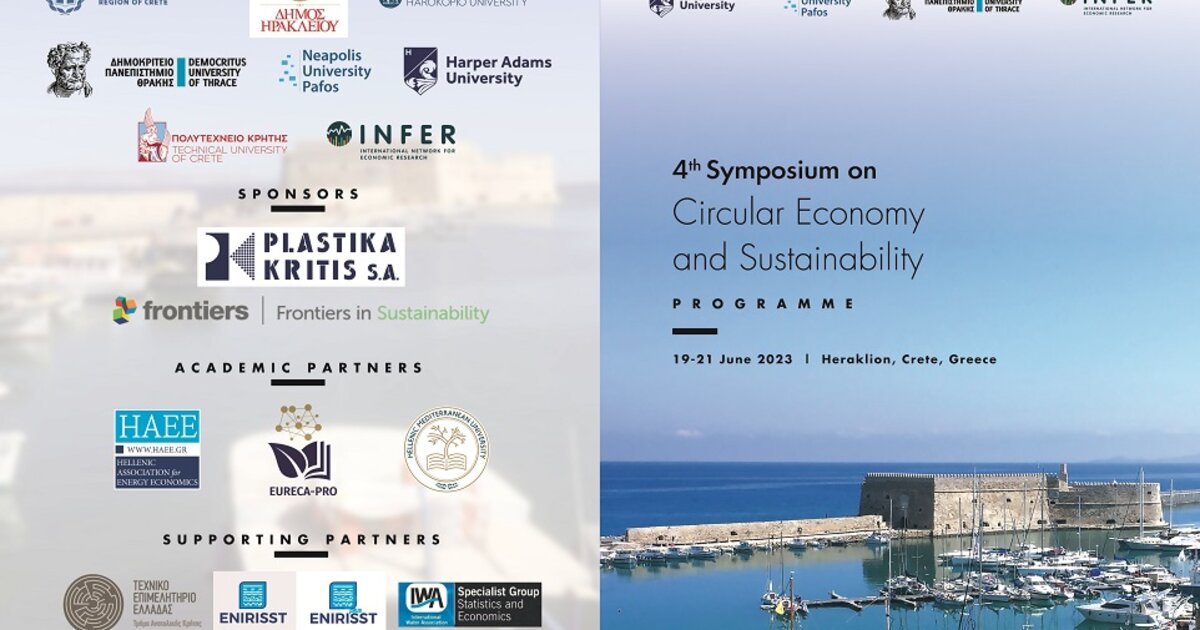 Το Πολυτεχνείο Κρήτης σε συνεργασία με το Χαροκόπειο Πανεπιστήμιο, τον διεθνή επιστημονικό οικονομικό οργανισμό INFER, το Harper Adams University, το Δημοκρίτειο Πανεπιστήμιο Θράκης, το Neapolis University Pafos, την Περιφέρεια Κρήτης και τον Δήμο Ηρακλείου διοργανώνουν το 4ο Διεθνές Συνέδριο Κυκλικής Οικονομίας και Βιωσιμότητας στις 19-21 Ιουνίου 2023, στο Πολιτιστικό Κέντρο Ηρακλείου.