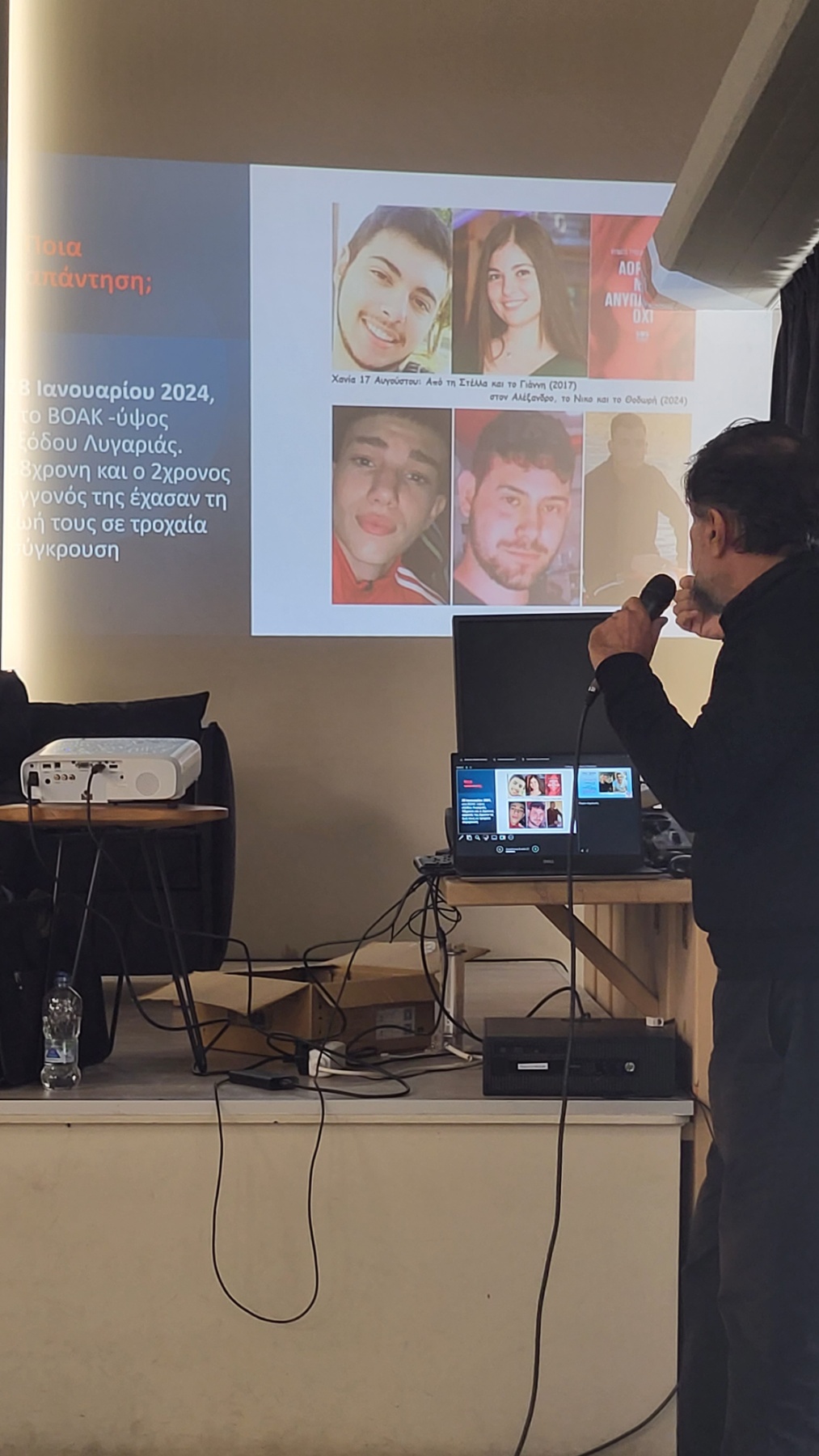 Ο Νικόλας Σταυρουλάκης, επίσης μέλος του Συλλόγου, σαν γονιός απευθύνθηκε κυρίως στους νέους καλώντας τους να μην πίνουν αλκοόλ αλλά και να φορούν προστατευτικό κράνος και ζώνη ασφαλείας. "Αν φορούσε κράνος ο γιος μου θα τον είχα κοντά μου" - είπε, με την απώλεια, 27 χρόνια μετά, να τον βασανίζει αδιάκοπα. "Σήμερα εμείς ... αύριο κανείς" - τόνισε ο ίδιος, περιγράφοντας γλαφυρά τον στόχο. "Κλείνει το σπίτι στην κυριολεξία, όταν χάνεις το παιδί σου. Όσο και να προσπαθείς να σταθείς στα πόδια σου είναι αδύνατο" - υπογράμμισε.