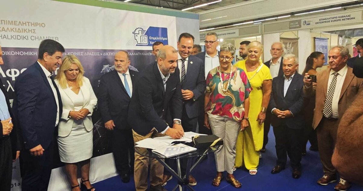 Την Κυριακή 08 Σεπτεμβρίου, στο πλαίσιο της 88ης «Διεθνούς Έκθεσης Θεσσαλονίκης», επισφραγίστηκε μια γόνιμη και με πολλές προοπτικές συνεργασία με την υπογραφή του Συμφώνου Αδελφοποίησης μεταξύ των Επιμελητηρίων Χαλκιδικής και Επιμελητηρίου Χανίων. Οι δύο Πρόεδροι, Γιάννης Κουφίδης και Αντώνης Ροκάκης, παρουσία της Υφυπουργού Ανάπτυξης και Επενδύσεων Άννας Μάνη-Παπαδημητρίου, του Γιώργου Καββαθά Προέδρου ΓΣΕΒΕΕ, του Γ.Γ. της Κεντρικής Ένωσης Επιμελητηρίων Ελλάδος (ΚΕΕΕ) Παναγιώτη Αγνιάδη και πολλών προέδρων Επιμελητηρίων όλης της χώρας, υπέγραψαν το σύμφωνο στοχεύοντας στη συνεργασία, τη δικτύωση, την ανταλλαγή ιδεών, την ανάδειξη καλών πρακτικών στον πρωτογενή, δευτερογενή και τον τουρισμό, τη διοργάνωση εκδηλώσεων από κοινού για ενίσχυση της επιχειρηματικότητας και της τοπικής οικονομίας. Από πλευράς του Επιμελητηρίου Χανίων συμμετείχαν και τα μέλη της Διοικητικής Επιτροπής κ.κ. Γιώργος Πατεράκης και Δημήτρης Μουντάκης.