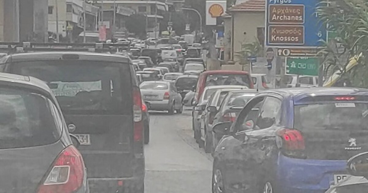 Ουρές οχημάτων σχηματίστηκαν σταδιακά από το πρωί στη λεωφόρο Κνωσού στο Ηράκλειο, στο ρεύμα προς το Βενιζέλειο, με την υπομονή και τα νεύρα των οδηγών να δοκιμάζονται σκληρά.