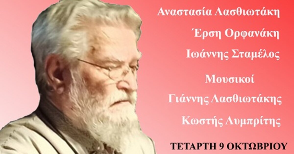 Για το έργο του θα μιλήσουν ο πρόεδρος της Εταιρείας Γιάννης Σταμέλος και οι φιλόλογοι Έρση Ορφανάκη-Λασηθιωτάκη, η Μαρία Καροφυλλάκη-Σπάρταλη και η Αναστασία Λασθιωτάκη. Την εκδήλωση θα πλαισιώσουν μουσικά οι κκ Κωστής Λυμπρίτης, Γιώργος Γενειετάκης και Γιάννης Λασθιωτάκης με τους χορωδούς Έφη Παχυγιαννάκη, Μαρία Λυμπρίτη, Γιώργο Φουλεδάκη, Κωστή Μαστοράκη, Γιώργο Κοκκίνη, Κίμωνα Λιανουδάκη κ.ά.