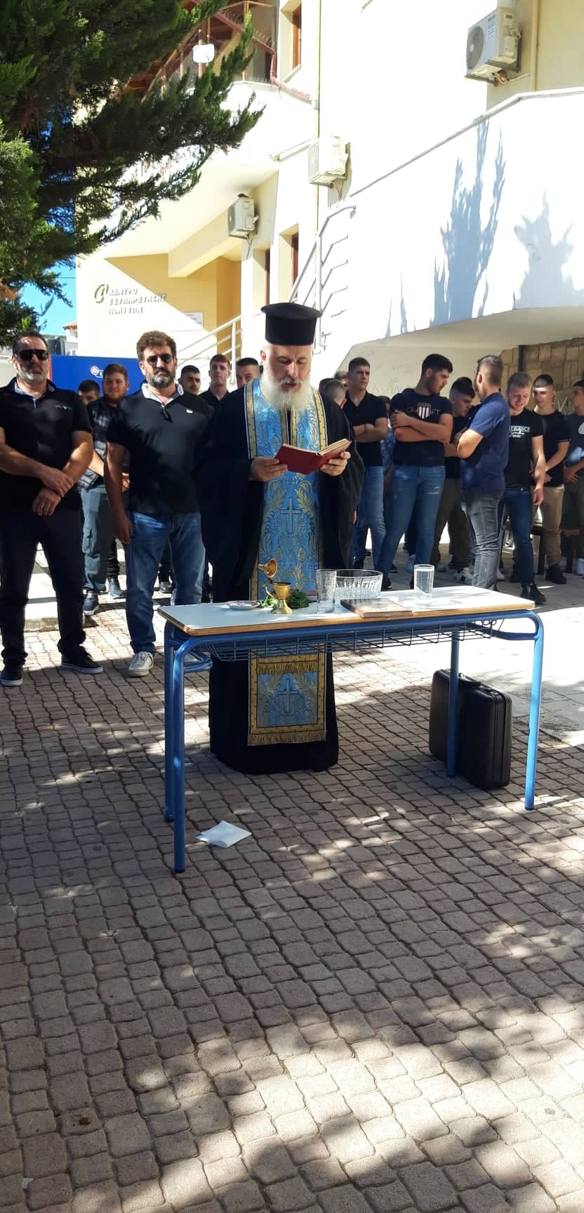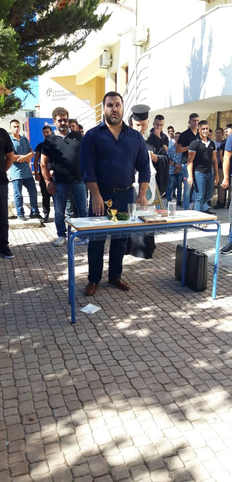 Ο Δήμαρχος, Λευτέρης Κοκολάκης, παραβρέθηκε στον αγιασμό του Λυκείου Αγίας Βαρβάρας, που στεγάζεται προσωρινά σε άλλες κτιριακές εγκαταστάσεις, λόγω των εργασιών στατικής ενίσχυσης