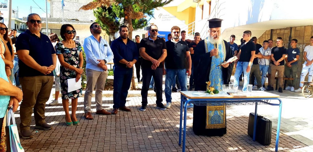 Με πολλά χαμόγελα και ευχές, πραγματοποιήθηκε ο καθιερωμένος αγιασμός για την έναρξη της σχολικής χρονιάς, στα σχολεία του Δήμου Γόρτυνας. Ο Δήμαρχος, Λευτέρης Κοκολάκης, παραβρέθηκε στον αγιασμό του Λυκείου Αγίας Βαρβάρας, που στεγάζεται προσωρινά σε άλλες κτιριακές εγκαταστάσεις, λόγω των εργασιών στατικής ενίσχυσης και αποκατάστασης του Γυμνασίου – Λυκείου, που βρίσκονται σε εξέλιξη.