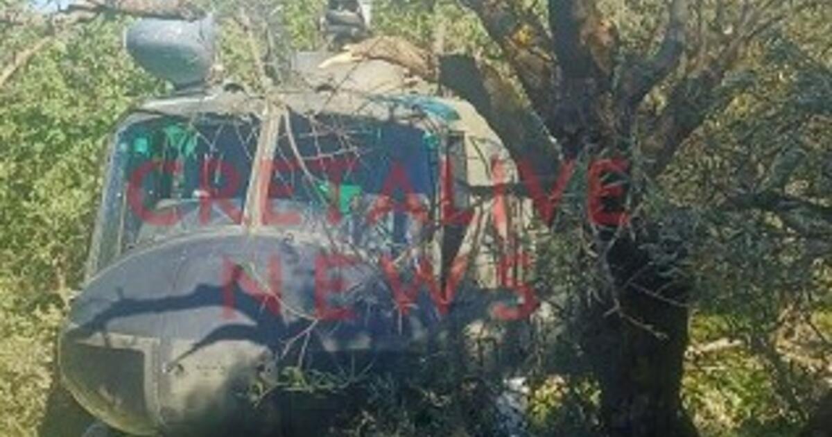 Σύμφωνα με πληροφορίες, το ελικόπτερο "κάθισε" με έναν σχεδόν απίστευτα ομαλό τρόπο πάνω σε κλαδεμένη ελιά, ενώ το πίσω μέρος του ακούμπησε σε μικρό τοιχίο