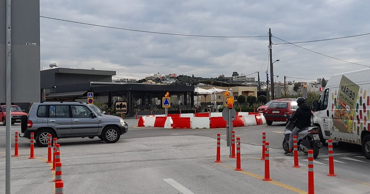 Αναφορικά με τον υφιστάμενο κυκλικό κόμβο, διαπιστώνεται ότι τα βαρέα οχήματα που επιδιώκουν να στρίψουν, δεν το καταφέρνουν, καθώς ο χώρος είναι μικρός, κι ως εκ τούτου, το Σάββατο θα αφαιρεθούν οι ορθοστάτες που οριοθετούν τον κόμβο και θα κατασκευαστεί ο κόσμος με επίστρωση από οπλισμένο σκυρόδεμα.