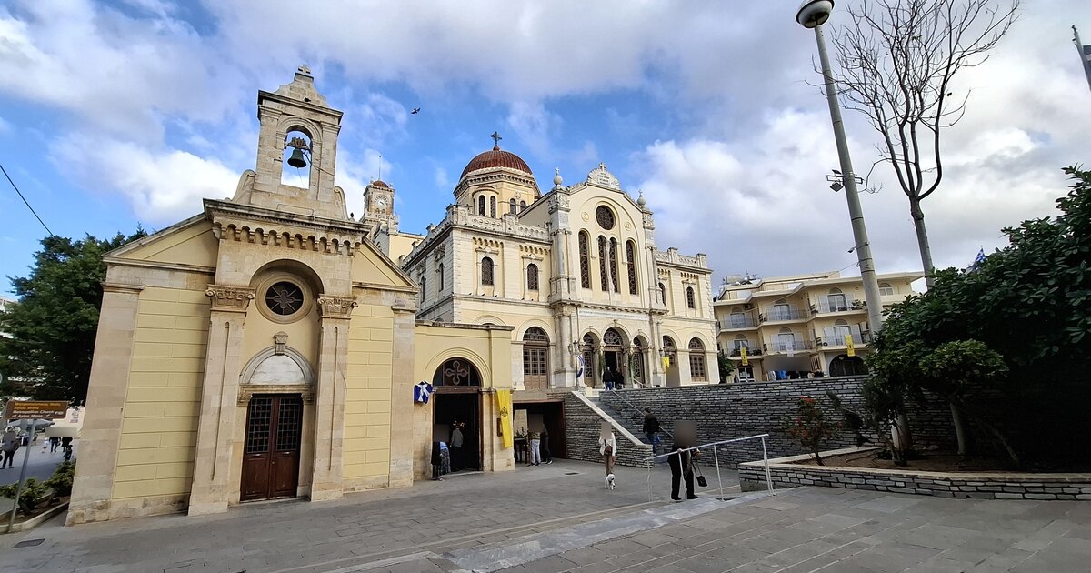 Ο παλαιός ναός του Αγίου Μηνά στέκει στη "σκιά" του επιβλητικού μεγάλου μητροπολιτικού ναού, ενός από τους μεγαλύτερους στην Ελλάδα, όπως επιβεβαίωσε σε πρόσφατη επίσκεψη της στο Ηράκλειο και η Υπουργός Πολιτισμού και αρχαιολόγος κ. Λίνα Μενδώνη.