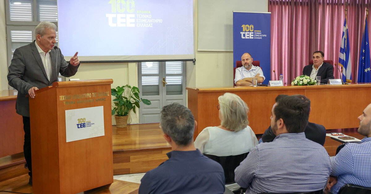 Η τοποθέτηση έγινε στην εκδήλωση για τα 100 χρόνια από την ίδρυση του Τεχνικού Επιμελητηρίου Ελλάδος η οποία πραγματοποιήθηκε στην αίθουσα συσκέψεων του ΤΕΕ/ΤΑΚ, στο Ηράκλειο.