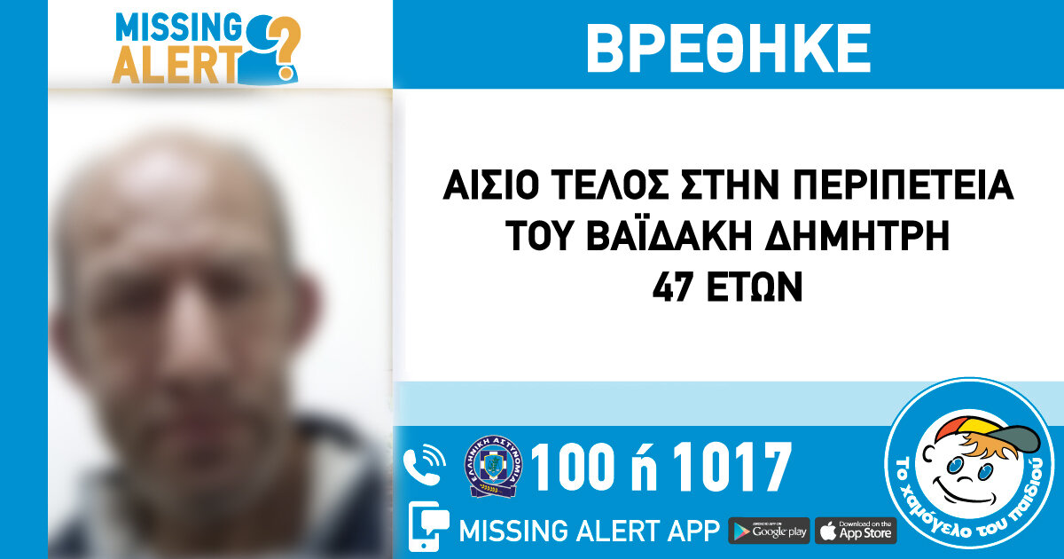 Η περιπέτεια του 47χρονου έληξε σήμερα, δίνοντας τέλος στην αγωνία των δικών της ανθρώπων που τον αναζητούσαν
