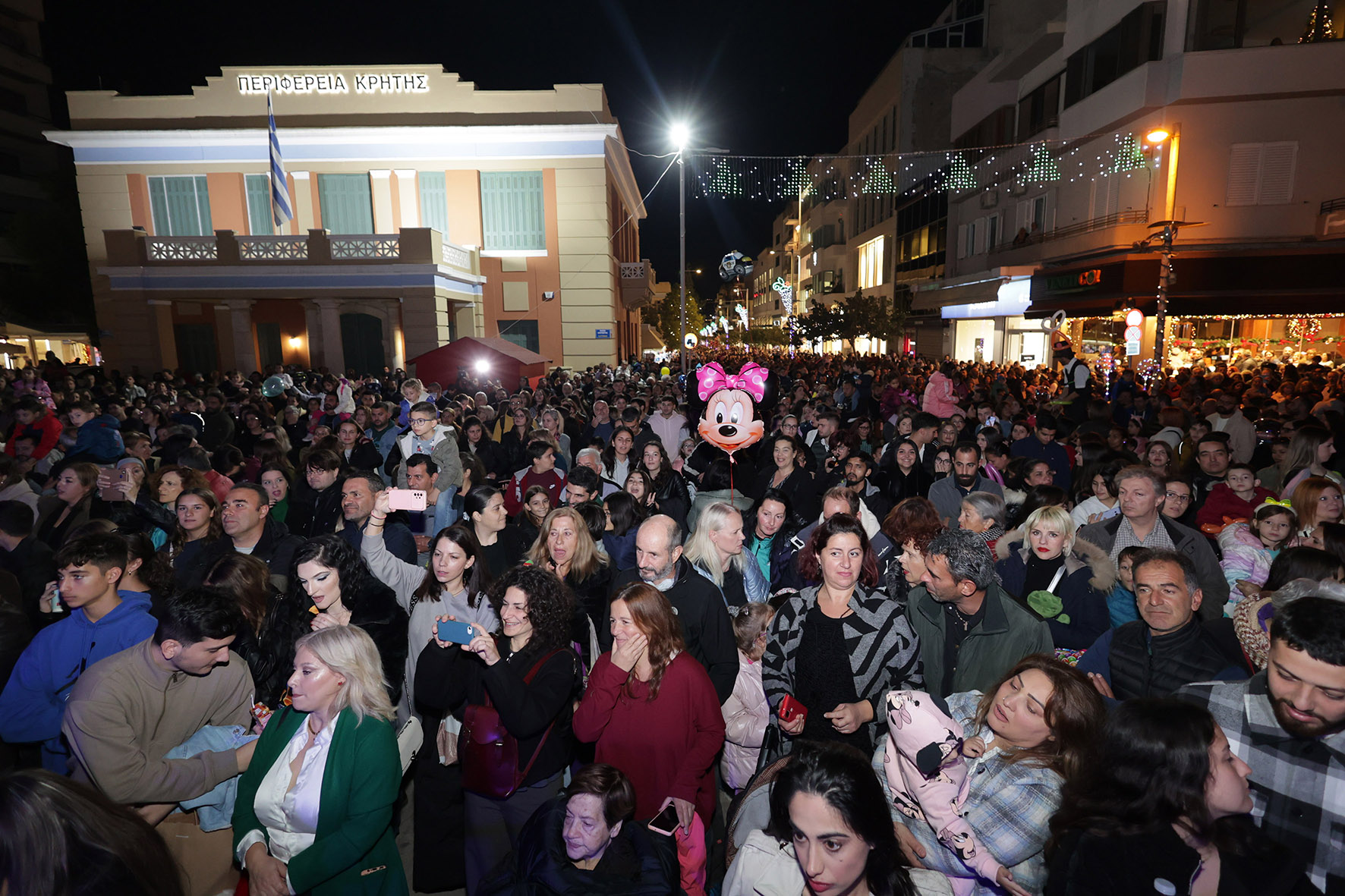 Ο Δήμαρχος Ηρακλείου μιλώντας στις Ηρακλειώτισσες, τους Ηρακλειώτες και τους επισκέπτες της πόλης, ευχήθηκε καλές γιορτές, τόνισε ότι ο Χριστουγεννιάτικος διάκοσμος και ο φωτισμός δεν θα είναι μόνο στο κέντρο αλλά θα διατρέξει τις γειτονιές και τα χωριά και επεσήμανε: «Είναι η στιγμή που θα ξεκινήσουμε την περίοδο των γιορτών ανάβοντας το Χριστουγεννιάτικο δέντρο. Ξέρουμε βέβαια ότι στην πόλη εξαιρουμένων των γιορτών έχουμε πάρα πολλά φώτα να ανάψουμε και θα το κάνουμε αυτό. Αλλά τώρα που είμαστε μέσα στις γιορτές μπορείτε να δείτε ήδη ότι έχουμε ένα αλλιώτικο διάκοσμο και αυτός ο διάκοσμος, αυτός ο φωτισμός, ο φωτισμός των γιορτών δεν είναι μόνο εδώ στο κέντρο, ο φωτισμός αυτός θα διατρέξει όλη την πόλη θα πάει στις γειτονιές θα πάει και στα χωριά μας, γιατί στο Δήμο Ηρακλείου έχουμε και τα χωριά μας και έτσι παντού θα υπάρχει μια νότα γιορτής».
