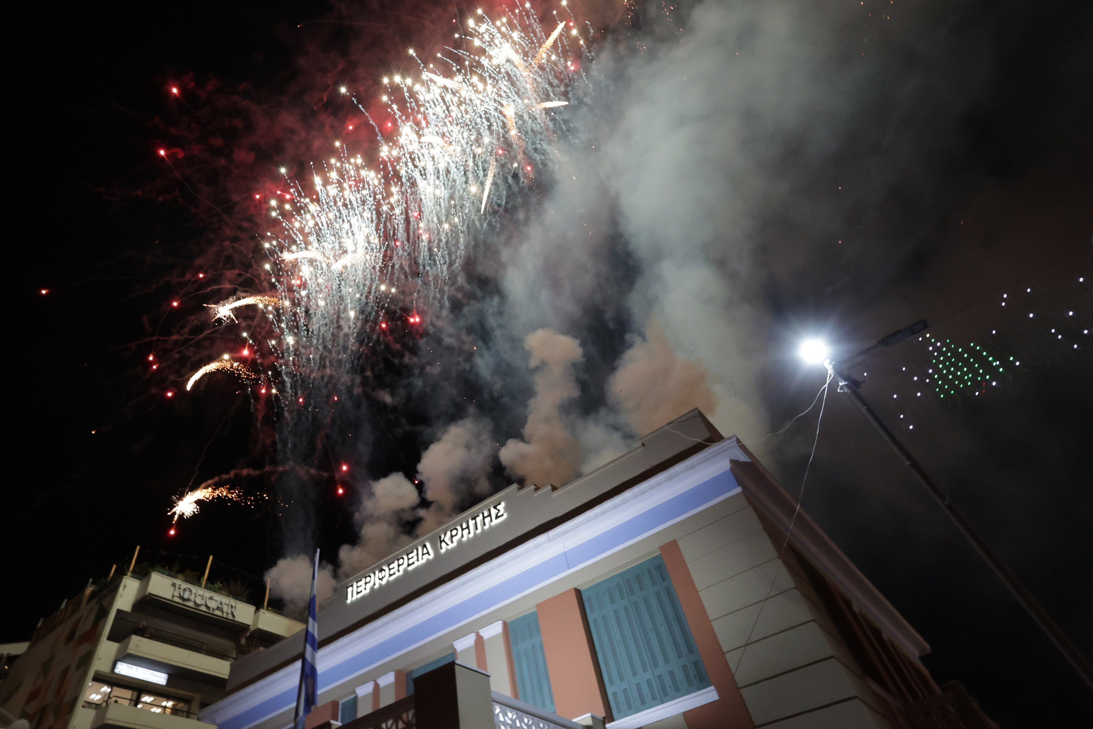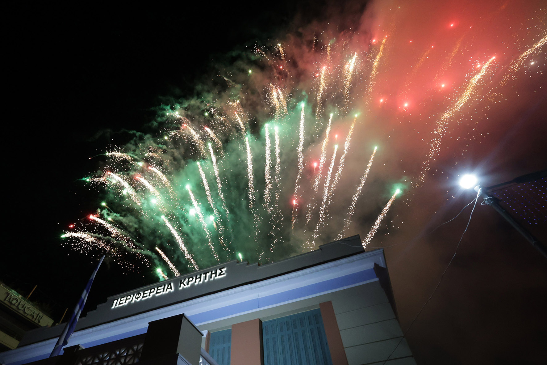 Η φωταγώγηση του Χριστουγεννιάτικου δέντρου συνοδεύτηκε από ένα υπερθέαμα αθόρυβων πυροτεχνημάτων που φώτισαν τον Ηρακλειώτικο ουρανό, μια καινοτομία που εγκαινίασε φέτος ο Δήμος Ηρακλείου, σεβόμενος ανθρώπους και ζώα.