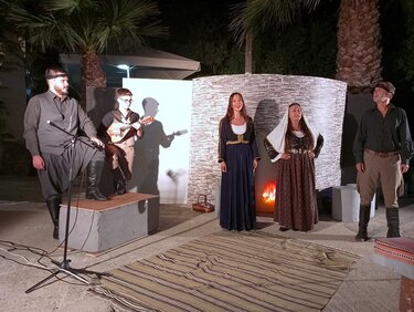 Στις 17 Αυγούστου, στην πλατεία του οικισμού Φαράτσι, η Θεατρική Σκηνή Ηρακλείου παρουσίασε σε σκηνοθεσία του Μάνου Μανιά, το αριστουργηματικό ποίημα του Γιώργη Καράτζη «ΕΜΙΝΕ». Γραμμένο σε άψογη κρητική διάλεκτο και σε ερμηνευτική απόδοση τεσσάρων ηθοποιών, το κοινό εντυπωσιάστηκε, συγκινήθηκε και ανταπέδωσε ένα με ένα δυνατό χειροκρότημα για το έργο που φέτος ανέβηκε για πρώτη φορά στο θεατρικό σανίδι.