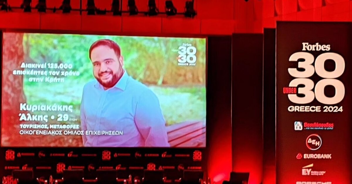 "Άρωμα" Κρήτης και συγκεκριμένα Χανίων στη φετινή λίστα του Forbes "30 κάτω των 30". Ο νεαρός επιχειρηματίας Άλκης Κυριακάκης ηλικίας 29 ετών, διακρίθηκε μαζί με άλλους 29 νέους για τις προσπάθειές τους σε διάφορους τομείς της επιστημονικής, κοινωνικής, οικονομικής και επιχειρηματικής ζωής της χώρας μας για το 2023. Η βράβευση των top 30 under 30 πραγματοποιήθηκε στο Μέγαρο Μουσικής, την Δευτέρα 6 Νοεμβρίου, παρουσία υπουργών, επιχειρηματιών και δημοσιογράφων.