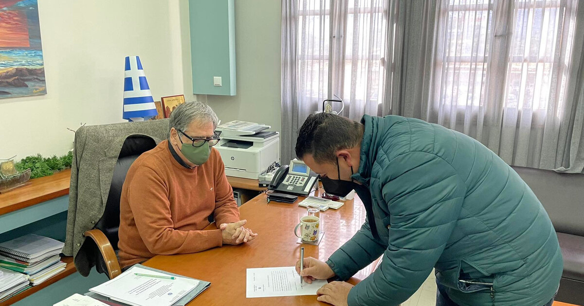 Ο κ. Κυριακάκης, παρουσία του Δημάρχου κ. Αντώνη Ζερβού, του αντιδημάρχου κ. Μανόλη Λεμπίδη,υπέγραψε το σχετικό πρωτόκολλο.