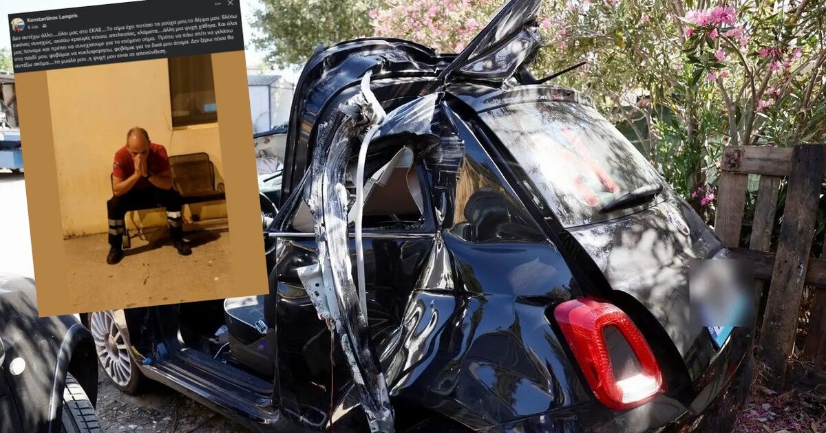 Ο ίδιος ήταν ανάμεσα στους πρώτους που έφτασαν στο σημείο. Παρέλαβε τη νεκρή γυναίκα και τη σοβαρά τραυματισμένη συνεπιβάτιδά της. Μέσα από λόγια που μαρτυρούν ψυχική εξάντληση και βαθύ ανθρώπινο πόνο, περιγράφει όσα κουβαλά ένας διασώστης πίσω από κάθε σειρήνα.