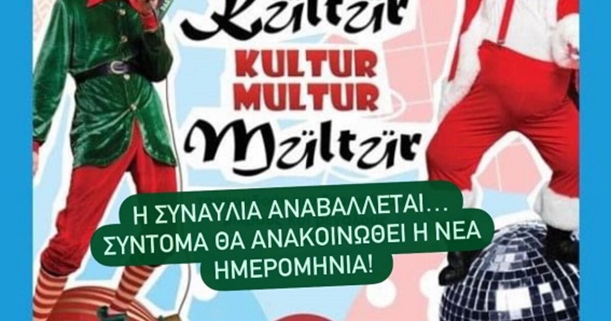 Η προγραμματισμένη για σήμερα, 28 Δεκεμβρίου, συναυλία με τους Kultur Multur στο Πολύκεντρο του Δήμου Ηρακλείου, αναβάλλεται για τεχνικούς λόγους.