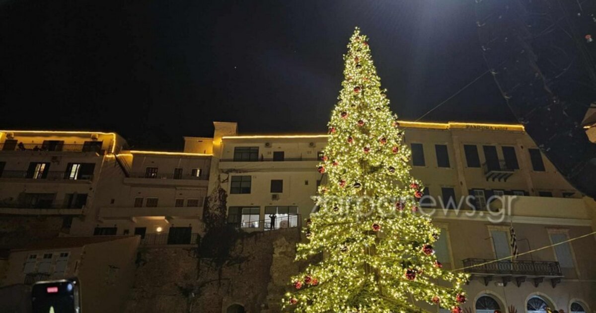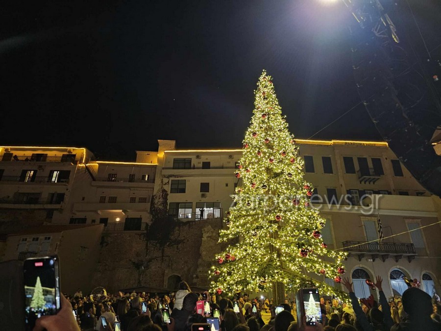 Φωταγωγήθηκε το χριστουγεννιάτικο δέντρο στο Ενετικό Λιμάνι Χανίων