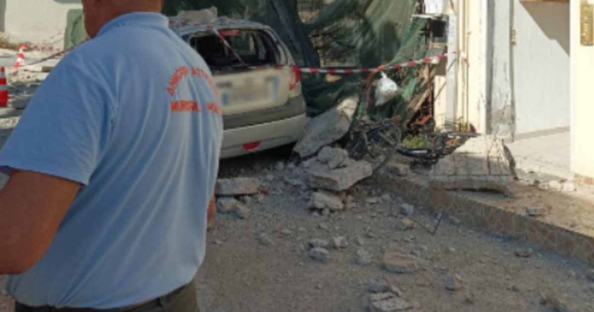 Αναστάτωση σε γειτονιά του Ηρακλείου - Κατέρρευσε τμήμα οικοδομής, ζημιές σε οχήματα -video