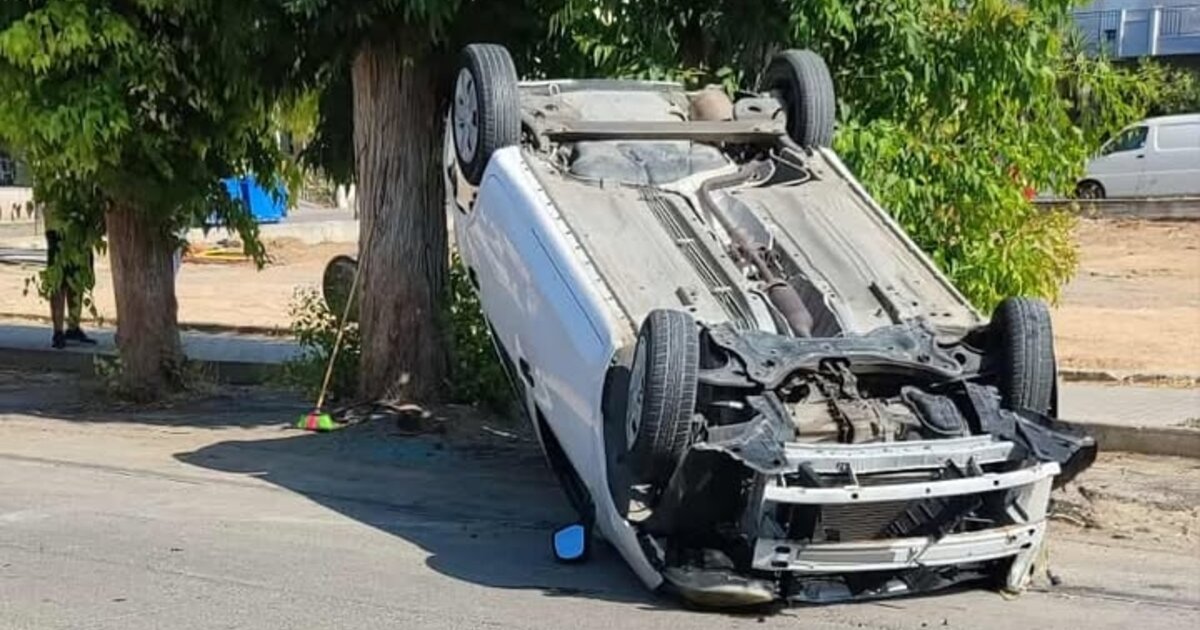 Το όχημα ανετράπη και περαστικοί έσπευσαν να βοηθήσουν την οδηγό