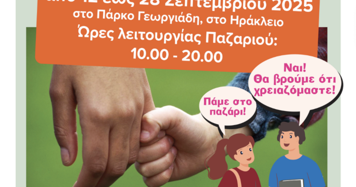 Ο «Σύνδεσμος Μελών Γυναικείων Σωματείων Ηρακλείου και Ν. Ηρακλείου» σάς προσκαλεί στο καθιερωμένο, φιλανθρωπικό του Παζάρι «Δεύτερο Χέρι – Χέρι Βοήθειας», που φέτος γιορτάζει 21 χρόνια συνεχούς παρουσίας στην πόλη.