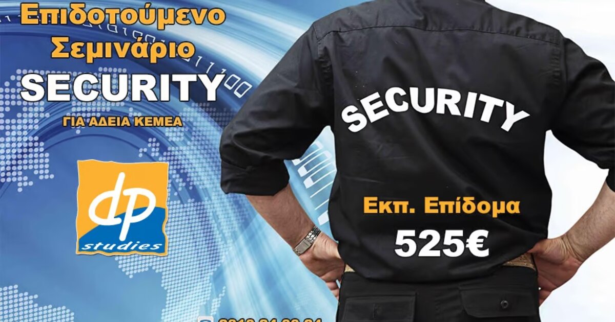 Ανοίγει άμεσα το Επιδοτούμενο Πρόγραμμα (Voucher) για Ανέργους με τίτλο «Ανάπτυξη βασικών δεξιοτήτων ως Προσωπικό Ιδιωτικής Ασφάλειας (Security) με παροχή πιστοποίησης των αποκτηθεισών γνώσεων” (με αμοιβή 525€ για κάθε άνεργο).
