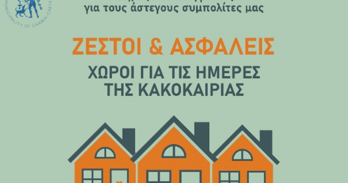 Επιπλέον, λόγω των δυσμενών καιρικών συνθηκών που θα επικρατήσουν έως και την Τετάρτη, 26/01/2022, ο Δήμος Χανίων προχωρά στο έκτακτο άνοιγμα δημοτικών δομών, ώστε να καταφύγουν οι άστεγοι της πόλης.