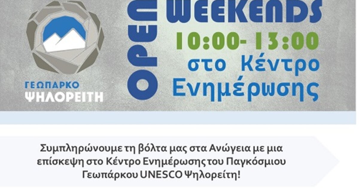 Σε μια προσπάθεια εξωστρέφειας και με διάθεση γνωριμίας τόσο με τους επισκέπτες και τις επισκέπτριες, αλλά και με τους κατοίκους της περιοχής, το Κέντρο Ενημέρωσης του Γεωπάρκου Ψηλορείτη στα Ανώγεια θα είναι πλέον ανοικτό και τα πρωινά του Σαββατοκύριακου!