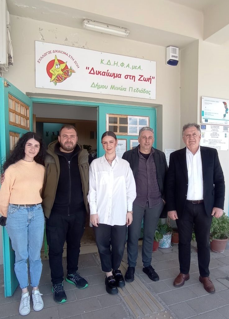Συνομίλησε επίσης με τον Διευθυντή του Φορέα Ζαχαρία Κυριακάκη και το προσωπικό, συγχαίροντας τους για το σπουδαίο έργο που επιτελούν ενώ ευχαρίστησε και όσους στηρίζουν έμπρακτα το "ΔΙΚΑΙΩΜΑ ΣΤΗ ΖΩΗ" που εξυπηρετεί συνολικά στα δύο τμήματα του (πρωινό και απογευματινό), τις ανάγκες 48 παιδιών και ενηλίκων με νοητική ή και με κινητική αναπηρία.