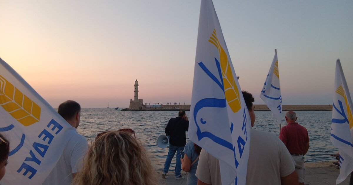 "Επειδή η φρικαλεότητα του ιμπεριαλισμού συνεχίζεται τον 21ο αιώνα με αμείωτη ένταση, σε ένδειξη αλληλεγγύης στον αγώνα του ηρωικού Παλαιστινιακού λαού, απλώθηκε πανό στον Φάρο του Ενετικού Λιμανιού που έγραφε «Απεμπλοκή από τους ιμπεριαλιστικούς πολέμους. Να κλείσει η Βάση της Σούδας. Λευτεριά στην Παλαιστίνη.» Την ίδια στιγμή το Γιαλί Τζαμί, απέναντι από τον Ενετικό Φάρο, πάλλονταν από τα συνθήματα «Θέλουμε τη Σούδα λιμάνι των λαών και όχι ορμητήριο των ιμπεριαλιστών!» «Λευτεριά την Παλαιστίνη» κ.α.