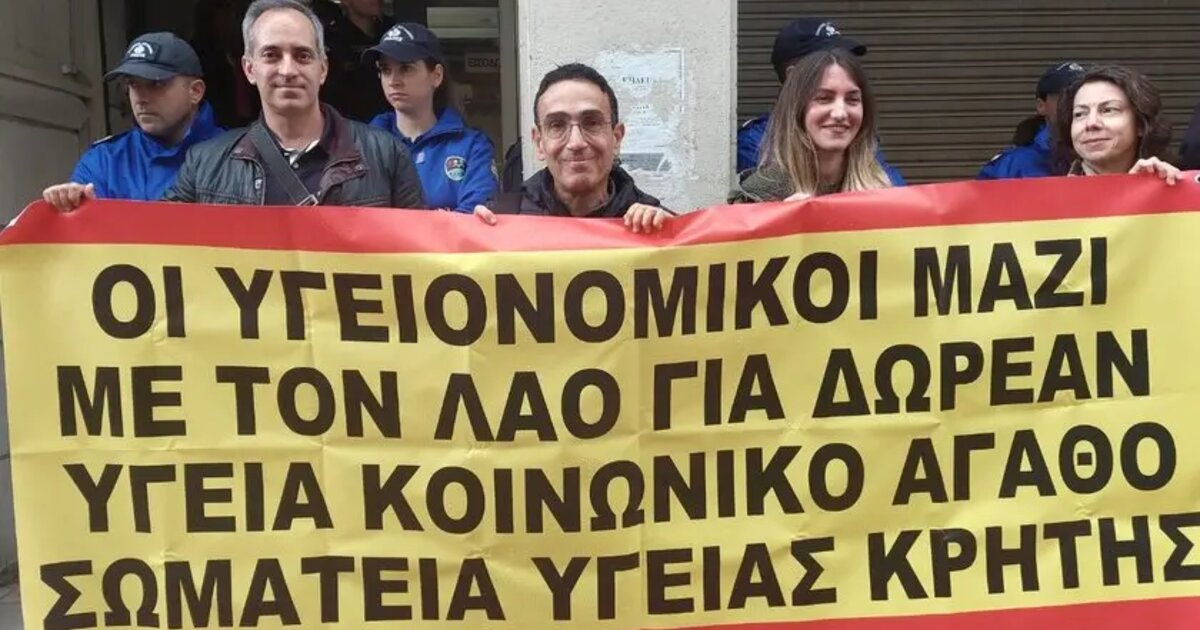 Αντιπροσωπεία υγειονομικών της Κρήτης συμμετείχε στην Παναιγαιακή Κινητοποίηση Υγειονομικών του ΕΣΥ που είχε πραγματοποιηθεί την περασμένη Δευτέρα, 31 Μαρτίου 2025, στο Υπουργείο Υγείας. Σε κοινή ανακοίνωση της Πέλας Νεονάκη, προέδρου της Ένωσης Ιατρών ΕΣΥ Ρεθύμνου, του Δημήτρη Βρύσαλη, προέδρου του Σωματείου Εργαζομένων ΠΑΓΝΗ και του Δημήτρη Φλυτζανή, προέδρου της Ένωσης Εργαζομένων Βενιζελείου επισημαίνονται τα εξής: