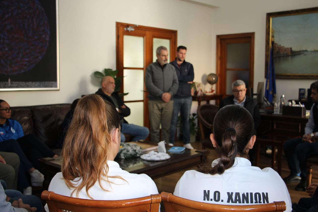Τον Πρόεδρο, Ιωάννη Χίνο, μέλη του Διοικητικού Συμβουλίου του Ναυτικού Ομίλου Χανίων (Ν.Ο.Χ.), προπονητές και αθλήτριες του Ομίλου υποδέχθηκε σήμερα, Παρασκευή 5/1/2024, στο Γραφείο του ο Δήμαρχος Χανίων, Παναγιώτης Σημανδηράκης.