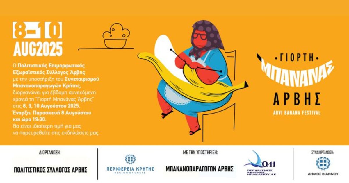 Με αρώματα, μουσικές, γέλια και φυσικά πολλές.. μπανάνες, θα γεμίσει και φέτος η Άρβη όπου για άλλη μία χρονιά πραγματοποιείται από τις 8-10 Αυγούστου η 7η "Γιορτή Μπανάνας"!