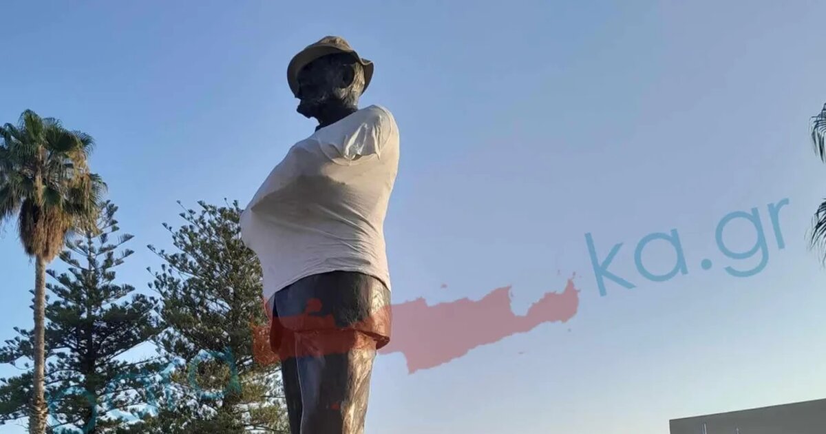Αντιδράσεις έχει προκαλέσει στα Χανιά η κίνηση αγνώστων να βάλουν ... καπέλο και μπλούζα στον ανδριάντα του Εθνάρχη, μπροστά από Εθνικό Ίδρυμα Ερευνών και Μελετών “Ελευθέριος Βενιζέλος” στην πλατεία Έλενας Βενιζέλου στη Χαλέπα, σύμφωνα με το parakritika.gr