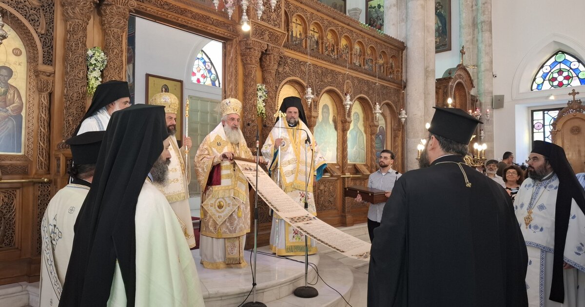 Με το πέρας της Θείας Λειτουργίας κάλεσε κοντά του τον προϊστάμενο του Ιερού Καθεδρικού Ναού του Αγίου Τίτου πατήρ Εμμανουή Αντωνακάκη και του παρέδωσε έναν πάπυρο όπου αναγράφεται η προς Τίτον επιστολή του Αποστόλου Παύλου.