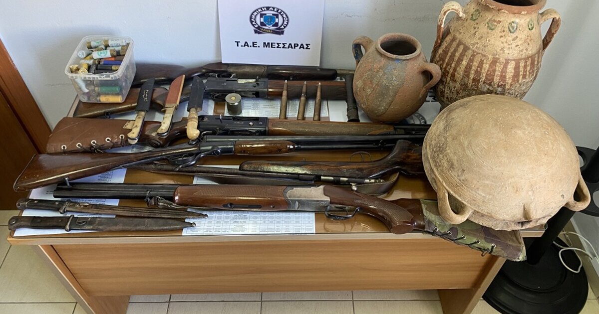 Μέχρι και αρχαία ευρήματα εντόπισαν οι αστυνομικοί στη Γόρτυνα, στη διάρκεια έρευνας που οδήγησε στη σύλληψη ενός 52χρονου για τον οποίο υπήρχαν οι πληροφορίες ότι εμπλέκεται σε υποθέσεις με όπλα.