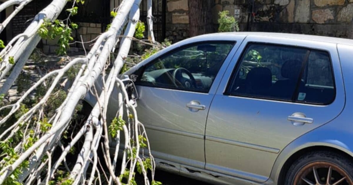 Συγκεκριμένα, οι ισχυροί άνεμοι που έπνεαν στην περιοχή, προκάλεσαν την πτώση του δέντρου, το οποίο προσγειώθηκε σε σταθμευμένο αυτοκίνητο, προκαλώντας του μεγάλες ζημιές.